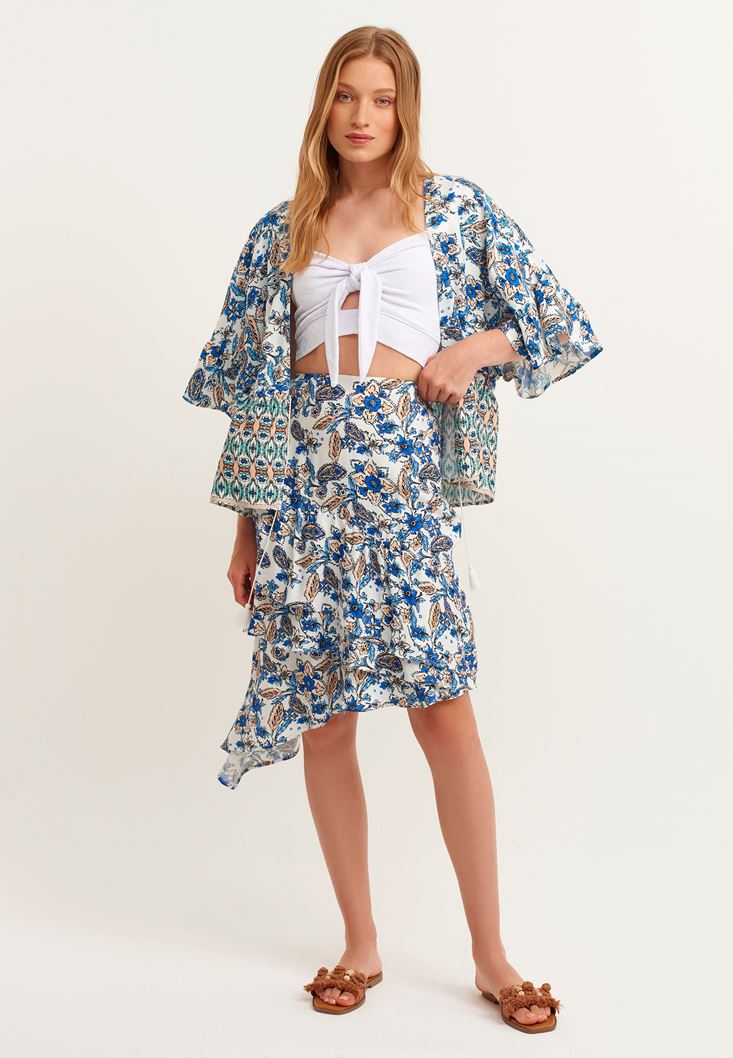 Çok Renkli Floral Desenli ve Bağcıklı Kimono