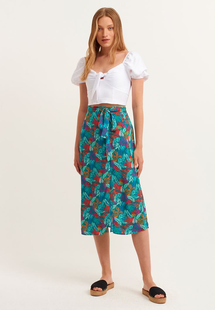 Oxxo Floral Desenli ve Yırtmaçlı Midi Etek 2124743190