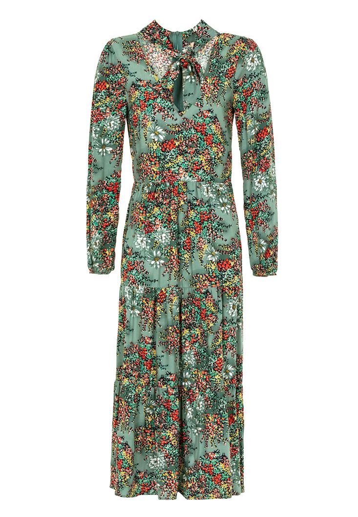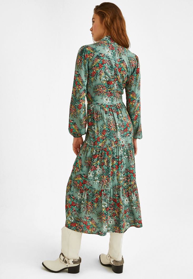• Bayan Yeşil Fular Detaylı Midi Boy Elbise