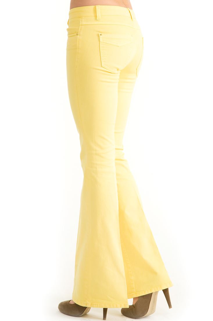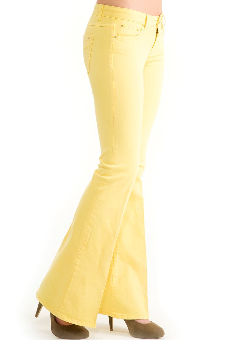 • Bayan Sarı Geniş Paça Düşük Bel Pantolon