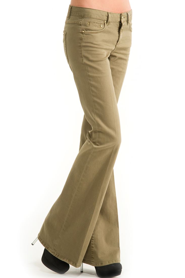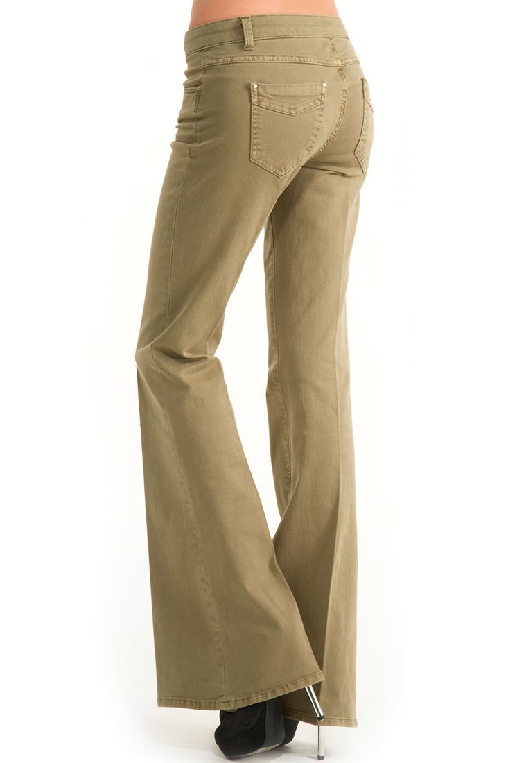 • Bayan Yeşil Geniş Paça Düşük Bel Pantolon