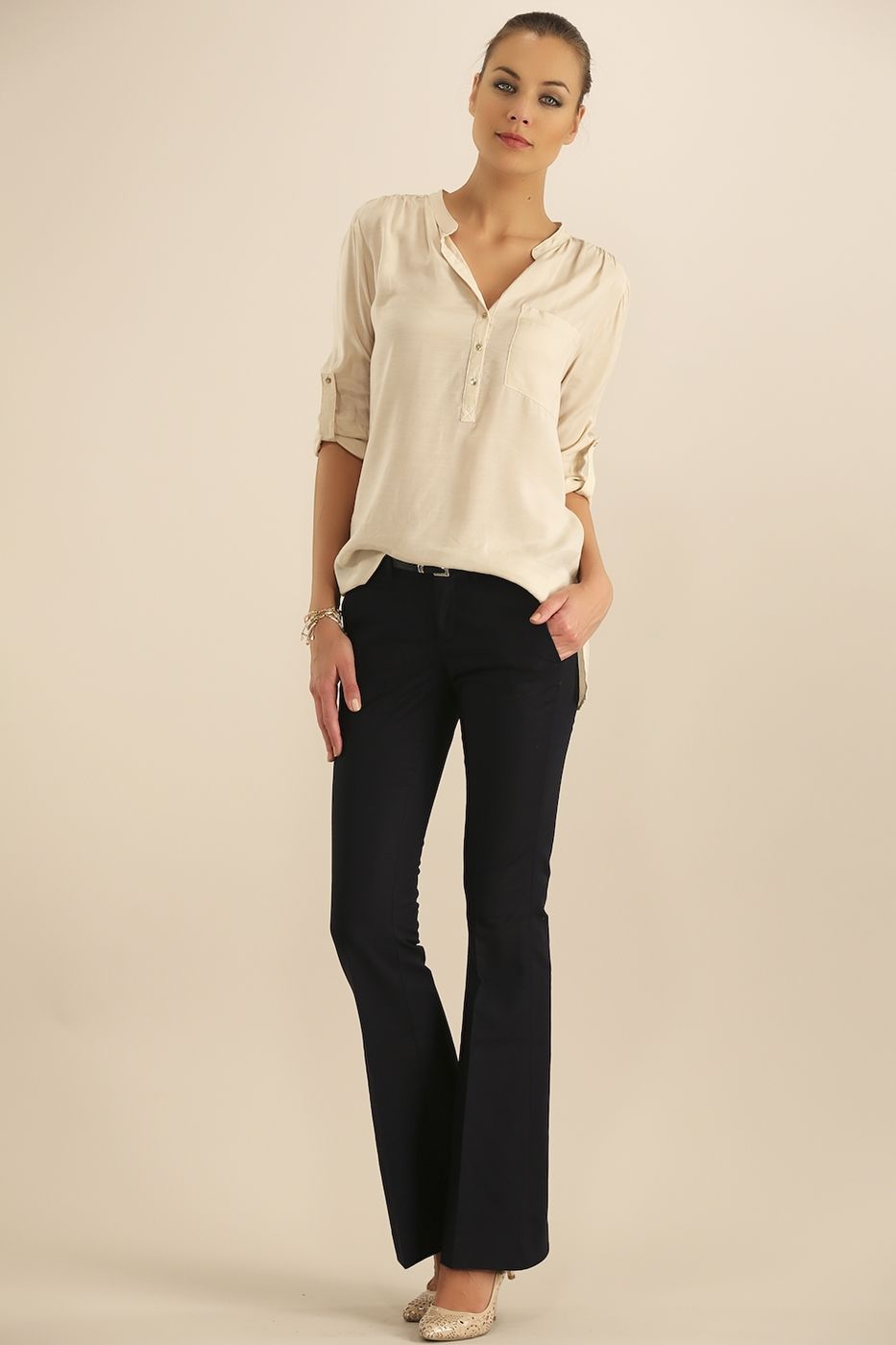 Düşük bel,yandan cepli ispanyol paça kumaş pantolon