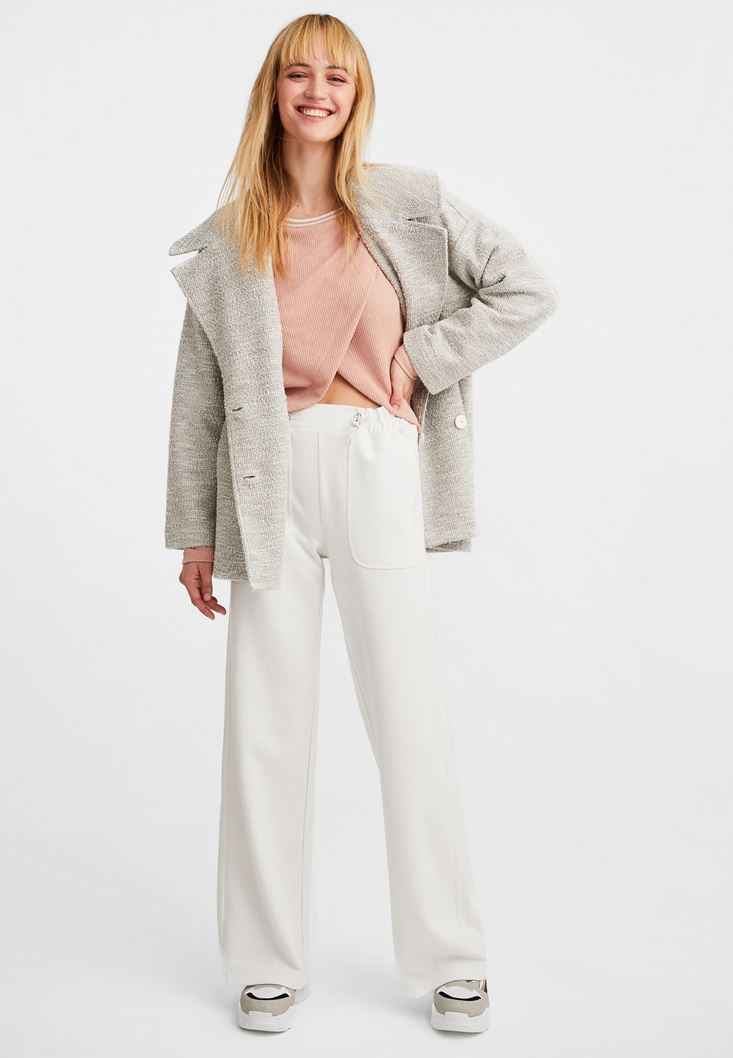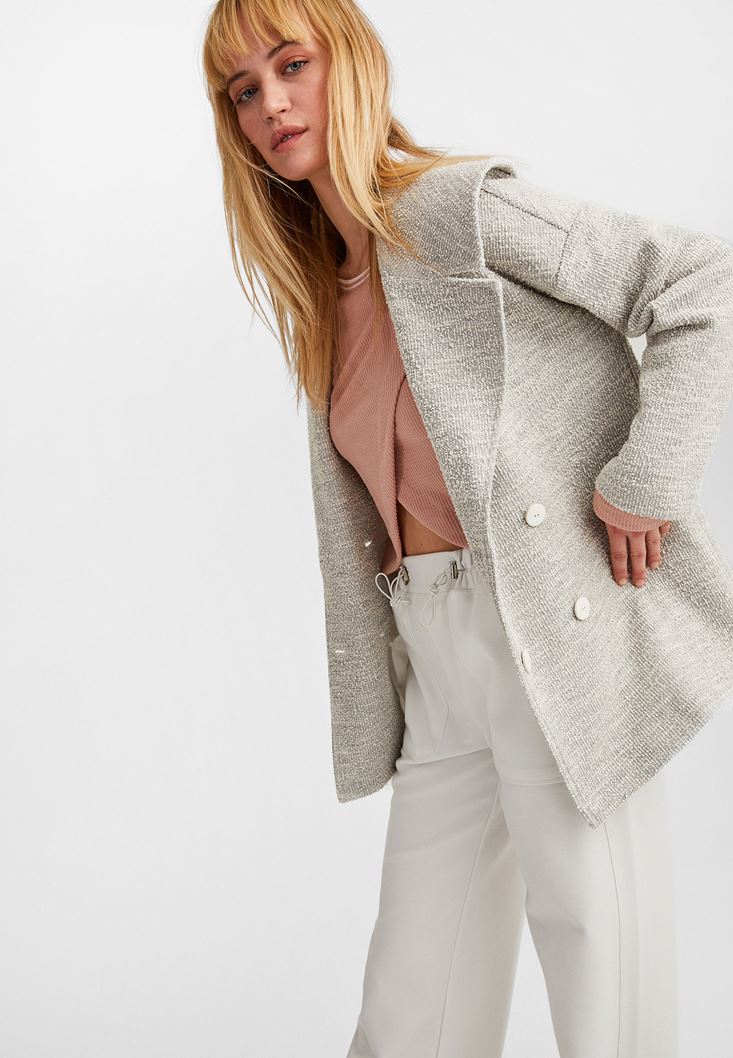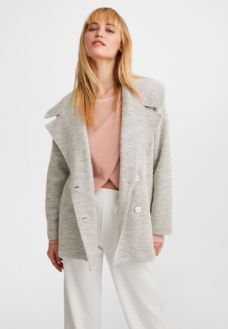 Geniş Yakalı Çift Düğmeli Ceket modeli, pamuk ve viskon karışımlı dokusu ile sizlere sunuluyor. kadın ceket modeli, geniş yaka ayrıntısının yanı sıra çift sıralı düğmeleriyle de farklı bir görünüm oluşturuyor. Çift düğmeli ceket modeli, geniş kalıbı ve hoş rengiyle favorileriniz arasına eklenmek için hazır görünüyor. kadın ceket modeli ile bol pantolonlar veya mini etekler tercih ederek dikkat çekici kombinler yapabilirsiniz. Geniş yakalı ceket modeli ile kullanabileceğiniz sweatler veya kazaklar eşliğinde ortaya çıkacak görünümün keyfini çıkarabilirsiniz. Oxxo'nun hayran bırakan dokular ve farklı ayrıntılarla sizlere sunduğu kadın ceket modelleri ile kombinlerinizi şekillendirebilirsiniz.