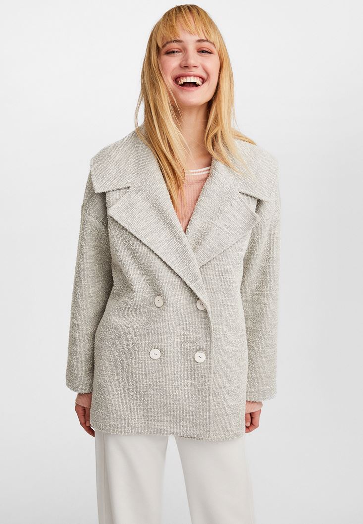 • Bayan Gri Geniş Yakalı Çift Düğmeli Ceket