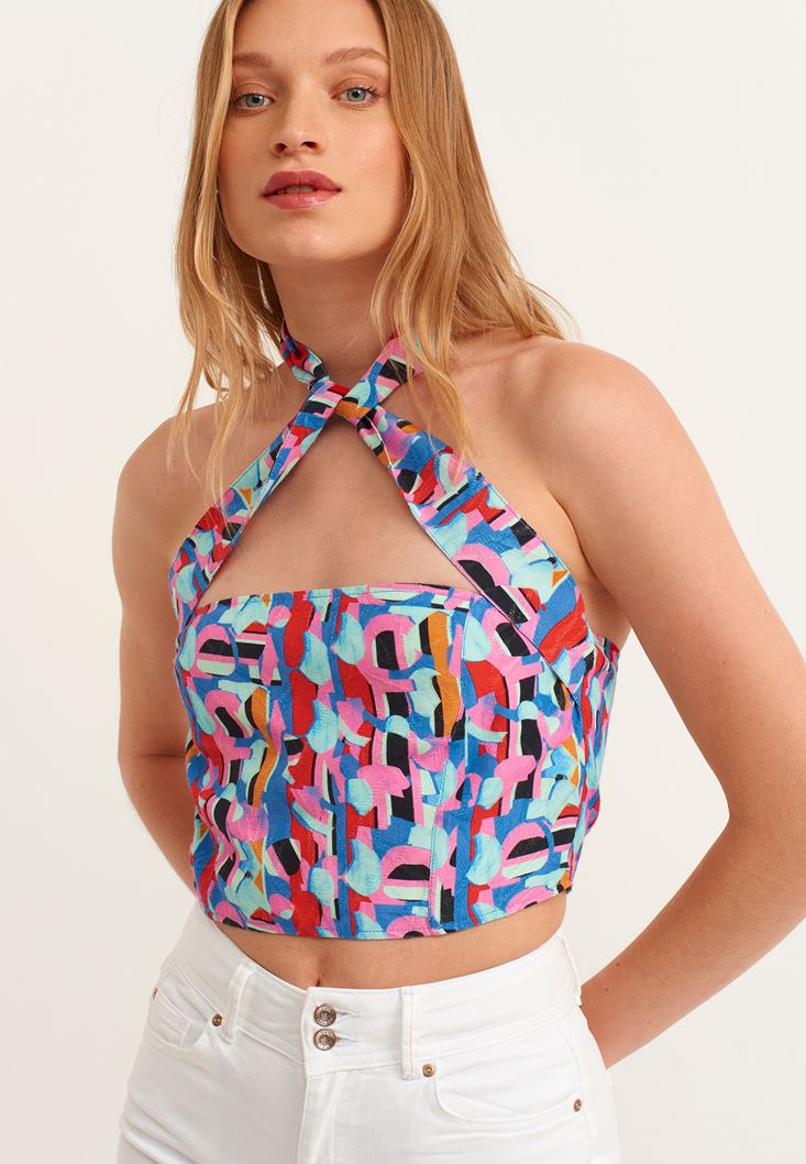 Oxxo Geometrik Desenli Crop Bluz 212352678