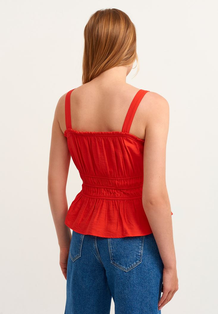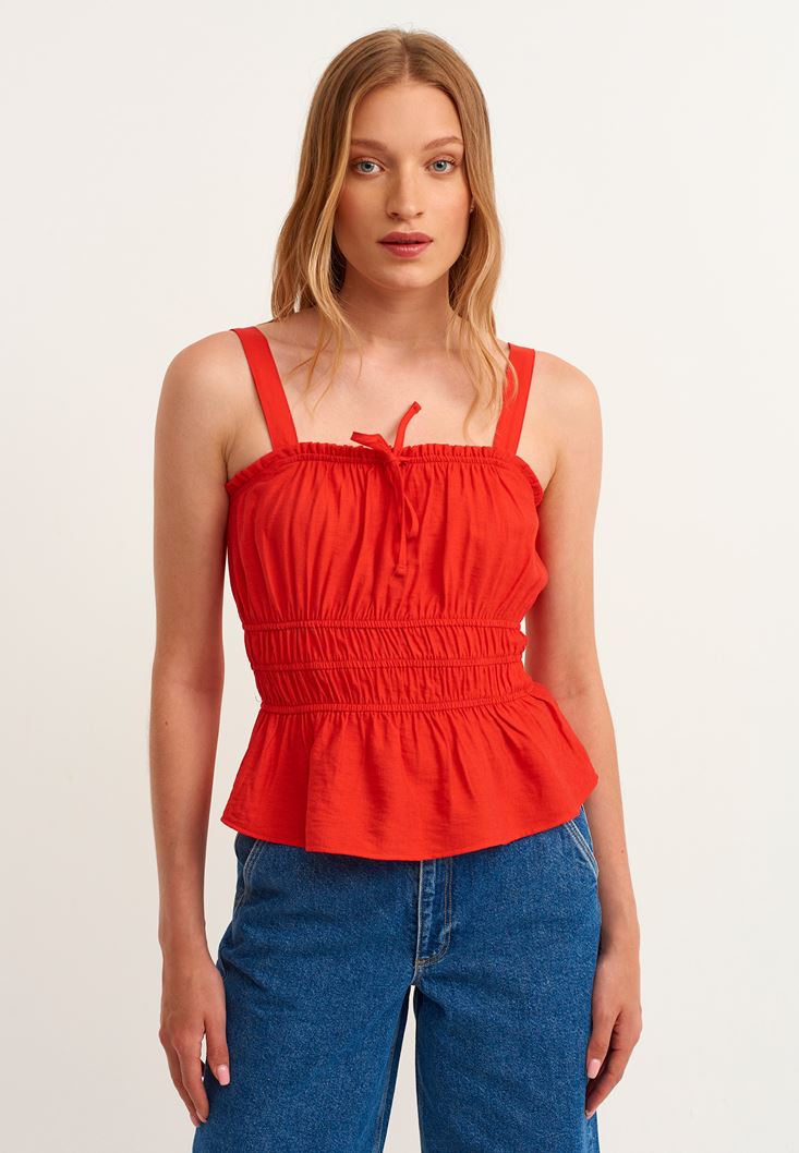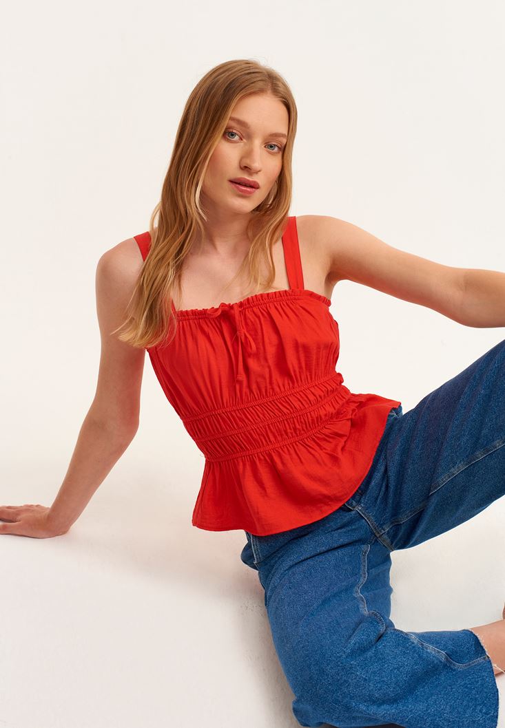 • Bayan Kırmızı Gipe Detaylı Askılı Atlet