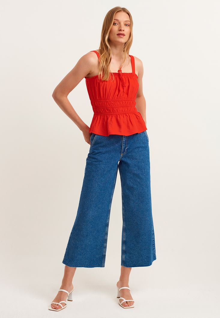Kırmızı Gipe Detaylı Askılı Atlet