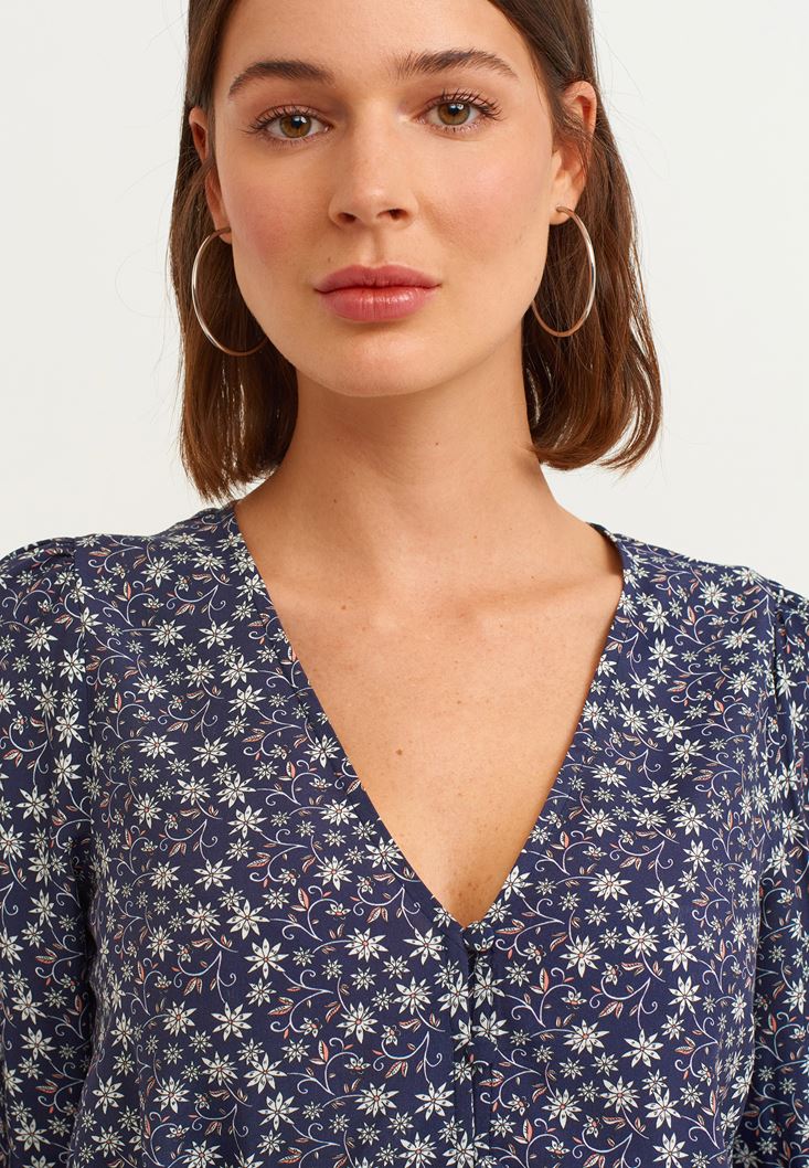 Gipe Detaylı Desenli Bluz
