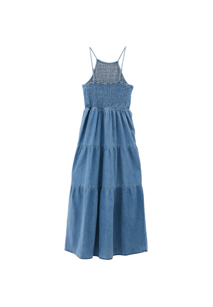 • Bayan Mavi Gipe Detaylı Denim Elbise