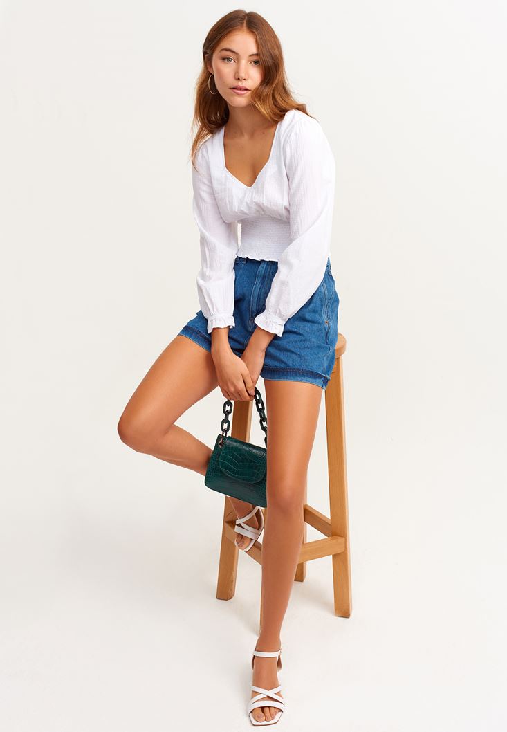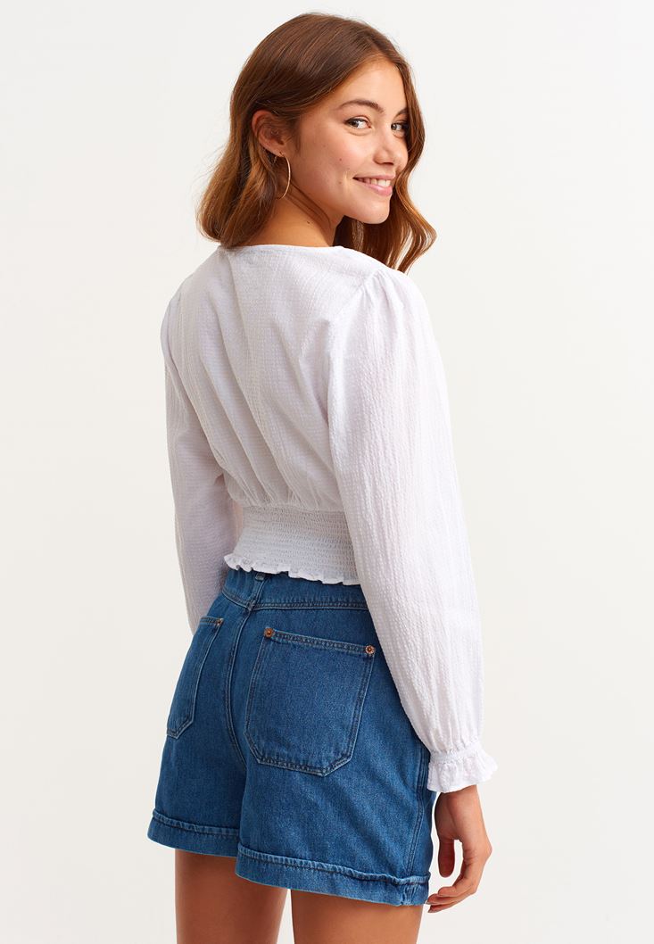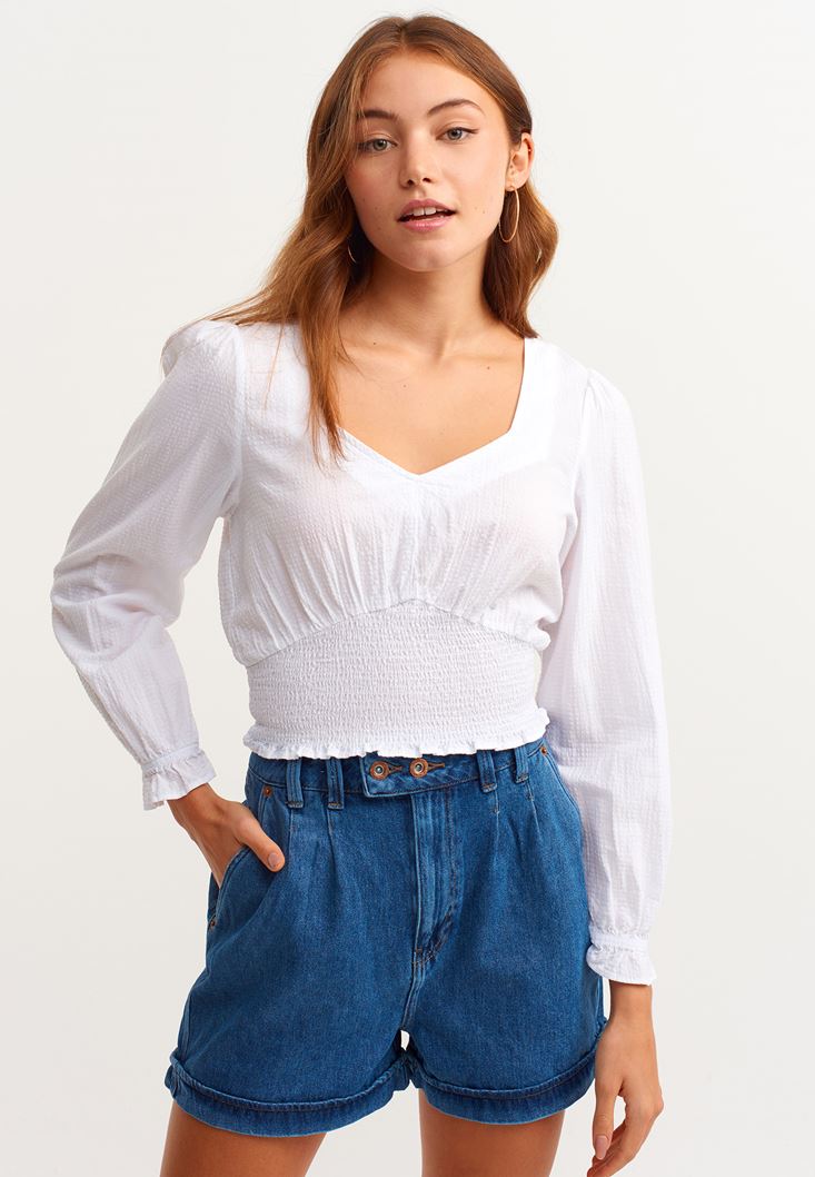• Bayan Beyaz Gipeli Balon Kol Bluz
