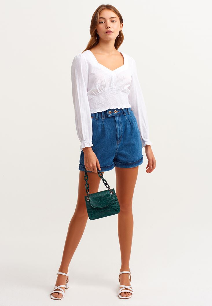 Gipeli Balon Kol Bluz modeli. Doğadan ilham alan dokuların birleşimi ile karşına çıkan bu parça yeni sezonda seninle! Bel kısmında gipe detayı bulunan balon kol bluz modelinin zarif görünümü, büzgülü kol ayrıntısı ile desteklendi... Rahatlığı ve doğallığı bir arada sunan bu parça ile kombinlerinde yaz esintisi yaratman mümkün... Şimdi mini şortların veya bol pantolonların gücünü balon kol bluz ile birleştir!