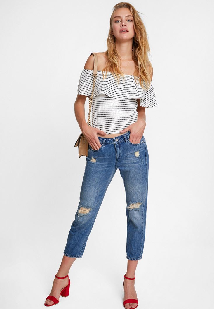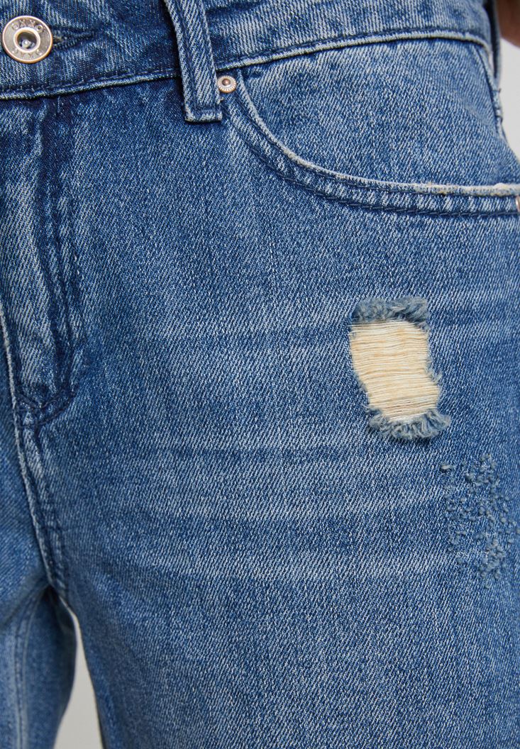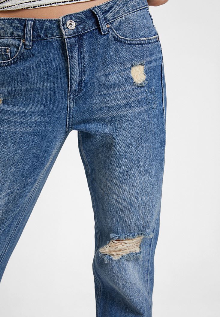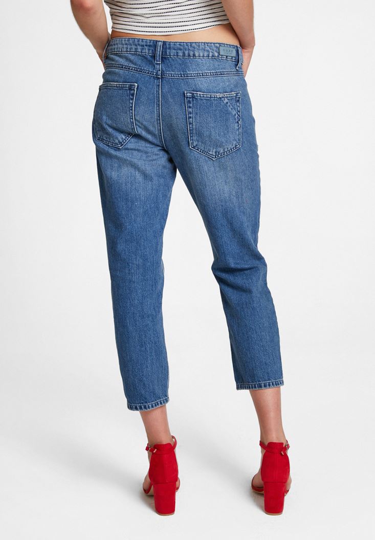 Girlfriend Denim Pantolon dikkat çeken detaylari ve konforlu kesimi ile kombinlerinizde her zaman yer vermek isteyeceginiz pantolon modelleri arasinda yer alacak. Pantolon modelinin rahat kesimi ve hareket özgürlügünü ön plana çikaran tasarimi ile en konforlu kombinler sizin olacak. Diz bölgesinde farkli hizalarda bulunan yirtik detaylari ile enerjik bir görünüme sahip olan pantolon modelinin kisa paça boyu ve iddiali görüntüsü bu tasarimi benzersiz kiliyor. Düz ya da topuklu ayakkabi modelleri ile birlikte kombinleyebileceginiz pantolon modelinin sahip oldugu pamuk dokusu yüksek nem transfer etme özelligi ile size her zaman keyif alacaginiz bir konfor sunuyor. OXXO’nun dokulardan aldigi ilhami yansitan parçalardan birisi olarak dikkatinizi çekecek.