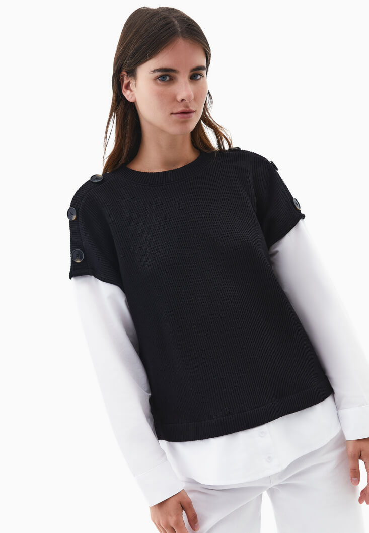 Siyah Gömlek Detaylı Kazak