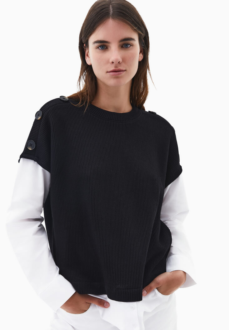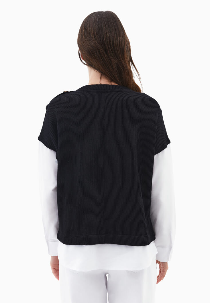 • Bayan Siyah Gömlek Detaylı Kazak