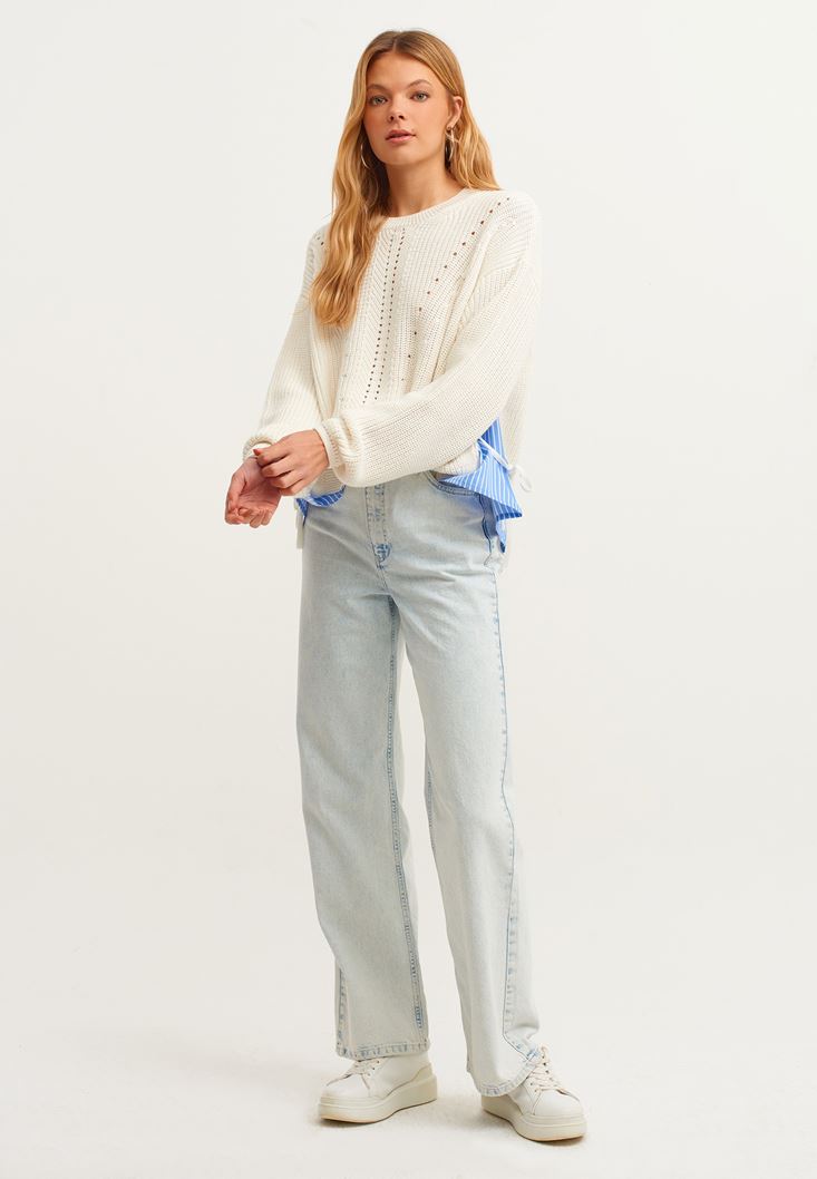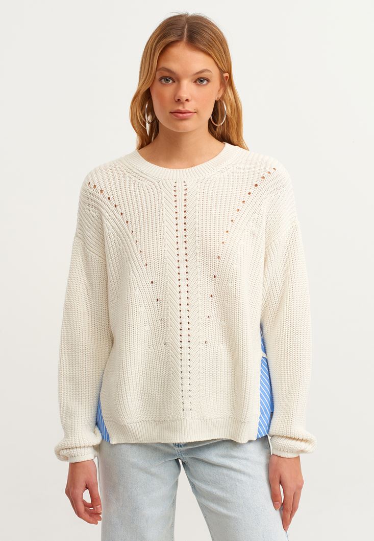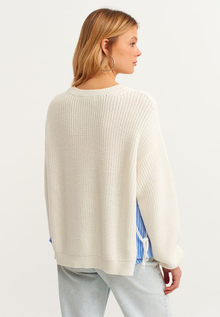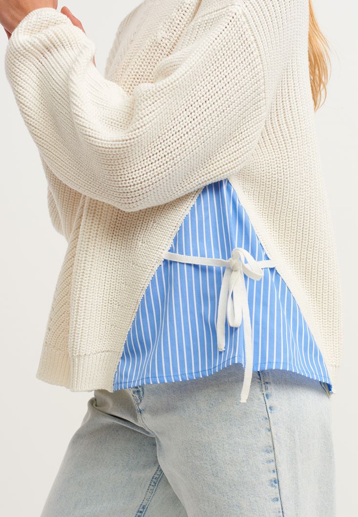 Krem Gömlek Detaylı Pamuklu Triko Kazak