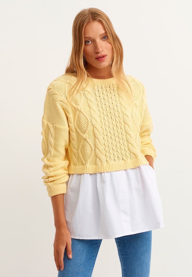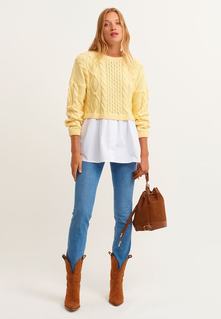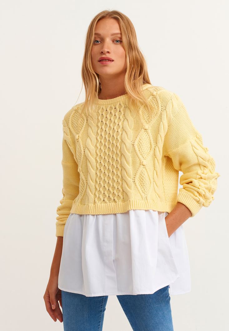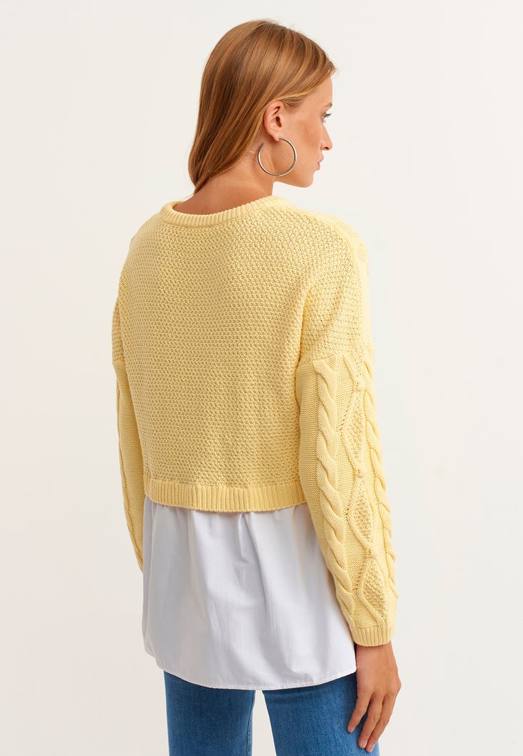 • Bayan Sarı Gömlek Detaylı Triko Kazak