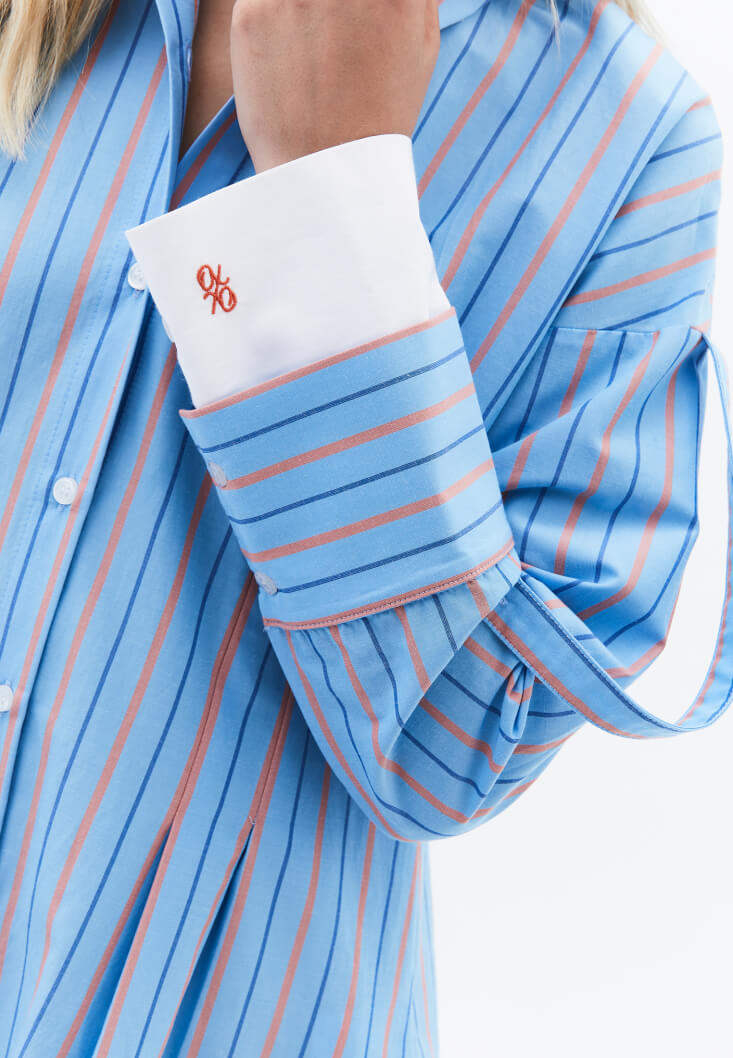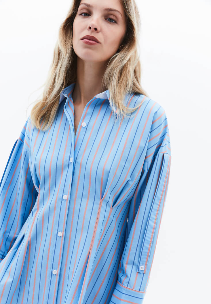 • Pamuk karışımlı çizgili poplin kumaş: taze ve yaz hissi