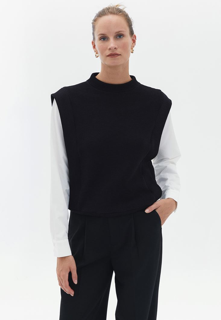 Siyah Gömlek Kollu Sweatshirt