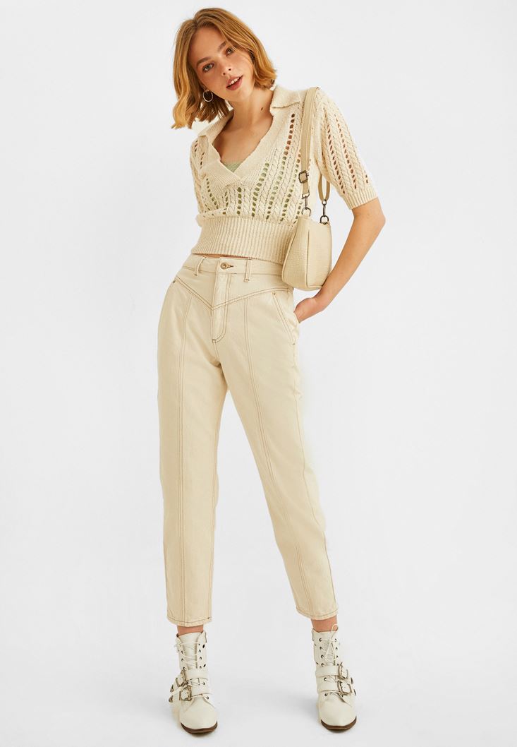 Bej Gömlek Yaka Ajurlu Triko