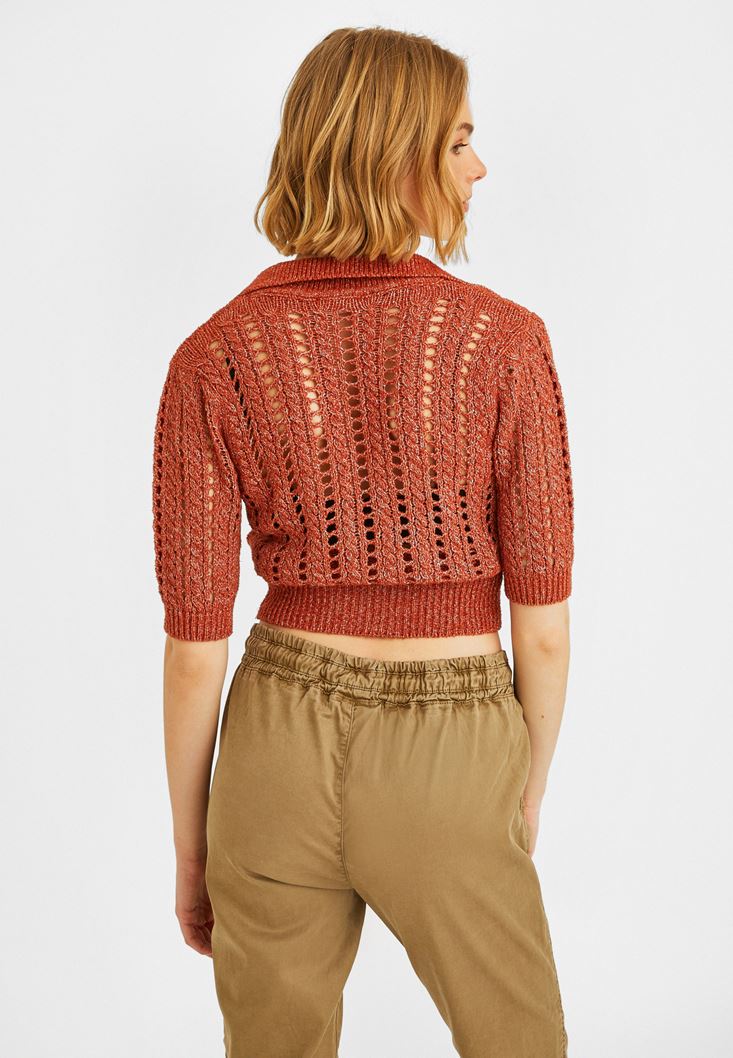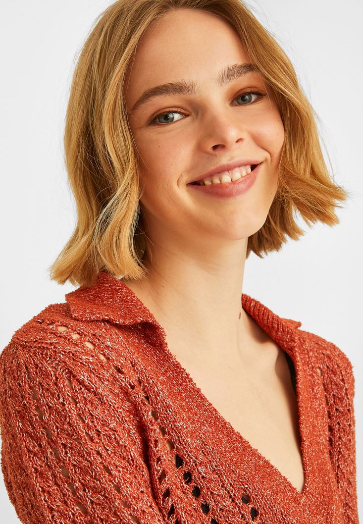 • Bayan Kiremit Gömlek Yaka Ajurlu Triko