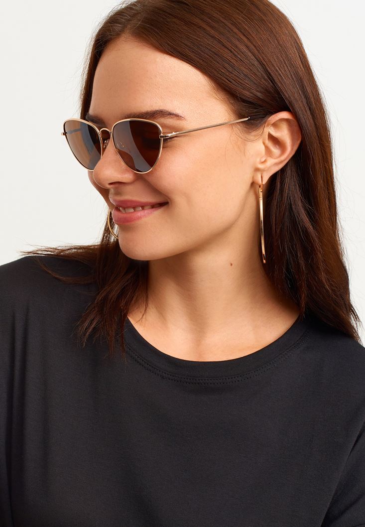 Güneş Gözlüğü modeli. UV korumalı teknolojisi ve ince çerçeve detayı ile ön plana çıkan bu parçayla tanış! Cool bir görünümün anahtarı olabilecek güneş gözlüğü ile harikalar yaratmaya hazırsın... Şapka, fular veya takı gibi parçalarla bir araya getirebileceğin güneş gözlüğü ile tüm meraklı bakışlar etrafında olacak...