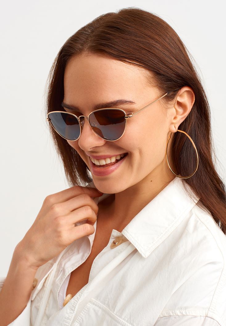 Güneş Gözlüğü modeli. UV korumalı teknolojisi ve ince çerçeve detayı ile ön plana çıkan bu parçayla tanış! Cool bir görünümün anahtarı olabilecek güneş gözlüğü ile harikalar yaratmaya hazırsın... Şapka, fular veya takı gibi parçalarla bir araya getirebileceğin güneş gözlüğü ile tüm meraklı bakışlar etrafında olacak...