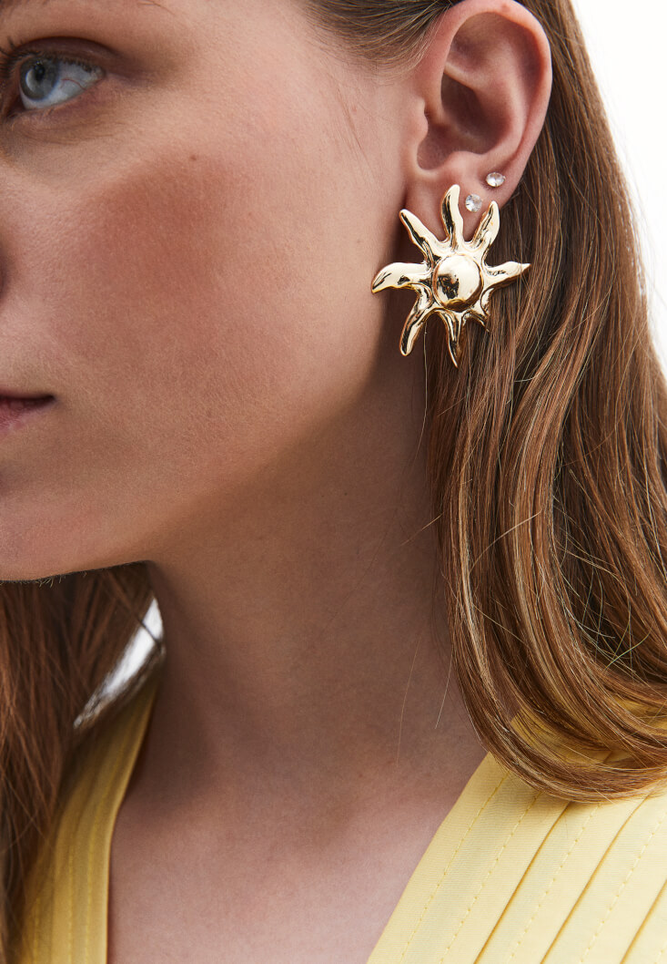 Altın Güneş Şeklinde Küpe