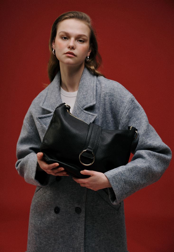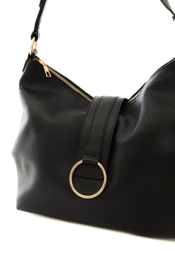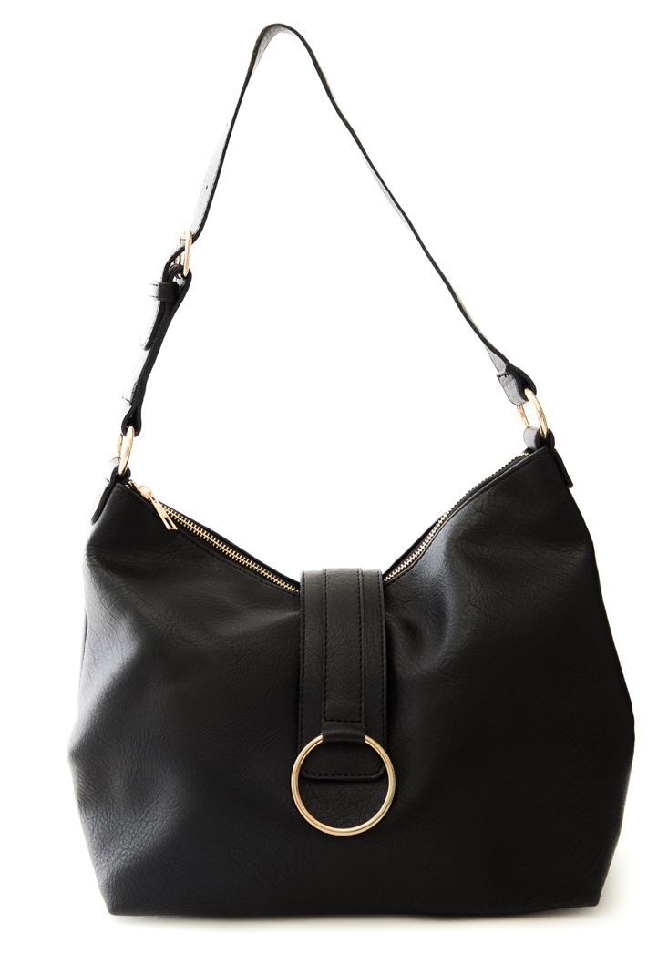 • Bayan Siyah Halka Detaylı Tote Çanta