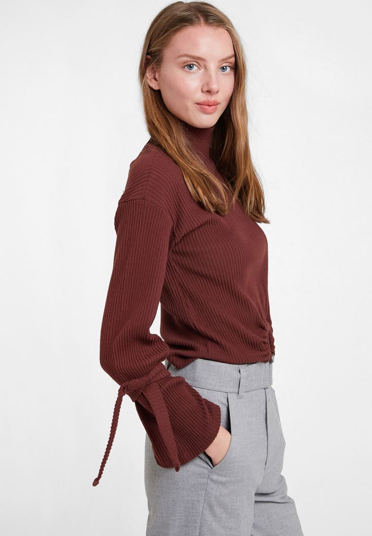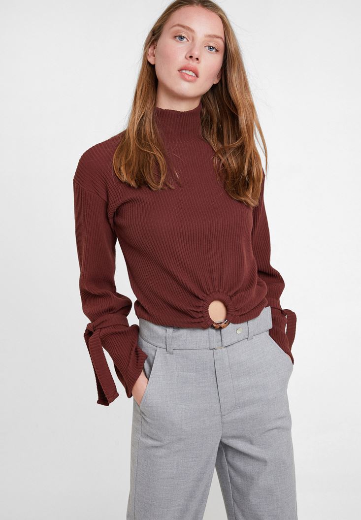 • Bayan Kahverengi Halka Detaylı Triko Kazak