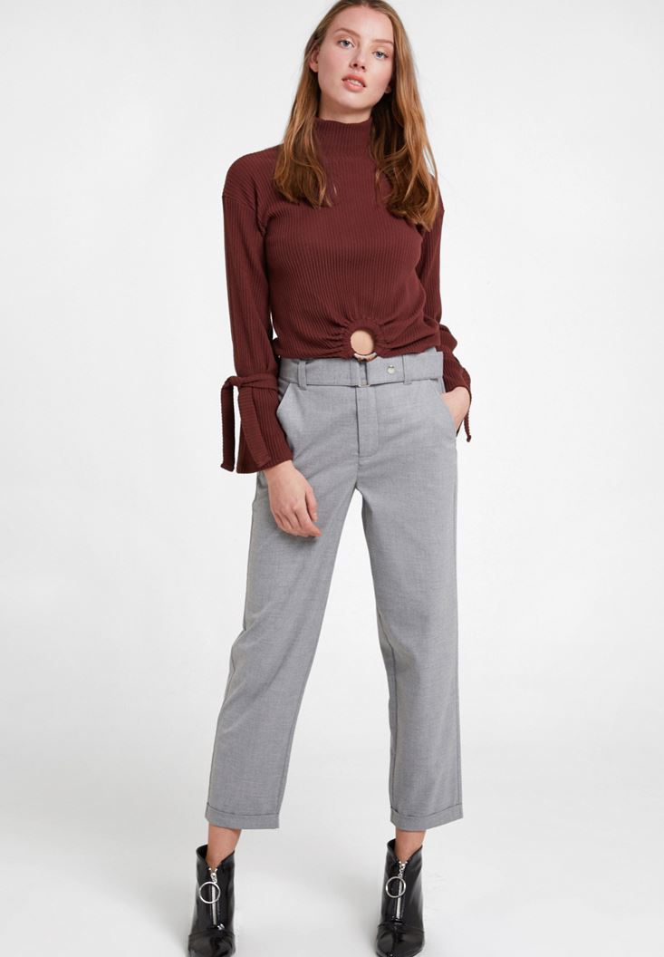 Halka Detaylı Triko Kazak modeli sahip olduğu salaş kesimi, zarif detayları ve yumuşak dokusu ile kombinlerinizde yer vermekten keyif alacağınız parçalardan birisi olacak. Yarım balıkçı yaka kesime sahip olan kazak modelinin sahip olduğu boyuna fitilli görünüm üst bedenin olduğundan çok daha zarif ve uzun gözükmesine yardımcı olur. Kazak modelinin kol kesiminde kullanılan kuşak detaylar tasarıma hoş bir hareket kazandırıyor. Kısa bel boyu ve bel kesiminin göbek hizasında kullanılan metal halka detayı ile görüntüsü tamamlanan kazak modeli bu halkanın yarattığı minik dekolte ile ön plana çıkıyor. Pamuk doku sayesinde hem nefes alan hem de nem emen bir yapıya sahip olan kazak modeli bu sayede gün boyu kullanım konforu sunuyor.