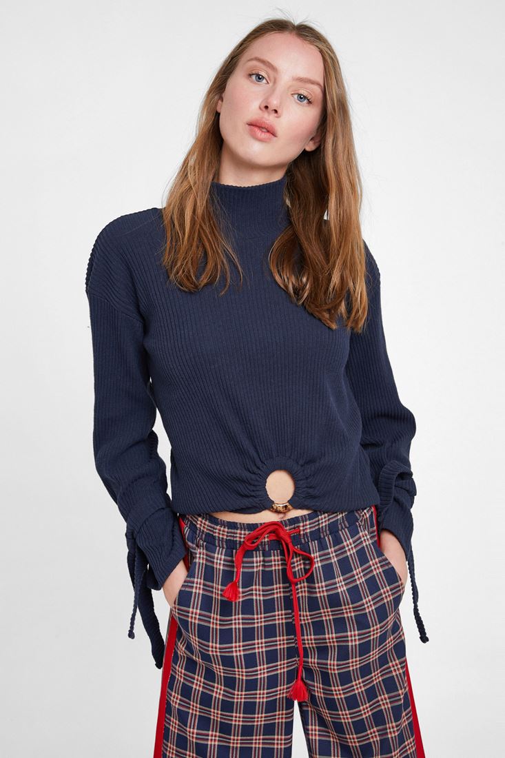 Halka Detaylı Triko Kazak modeli, pamuklu yapısıyla sizlere sunulan yumuşak dokuyu en yeni sezonda gözler önüne seriyor. kadın triko kazak modeli; dik yaka tasarımının yanında, kollarındaki bağlama detayıyla da farklı bir görünüm sunuyor. Farklılığıyla dikkat çeken triko kazak modeli, önünde bulunan halka tasarımının hoş duruşu ile kombinlerinizi canlandırmak için hazır görünüyor. kadın triko kazak ile kumaş pantolon veya skinny denim pantolon modelleri kullanarak, kombin seçeneklerinizi çeşitlendirebilirsiniz. Deri ceket veya kadın kürk kaban tercih edeceğiniz kombinlere, kadın triko kazak modelini rahatlıkla ekleyebilirsiniz. Oxxo'nun dikkat çekici ayrıntılarla sizlere sunduğu kadın triko kazak modelleri ile benzersiz stiller elde edebilirsiniz.