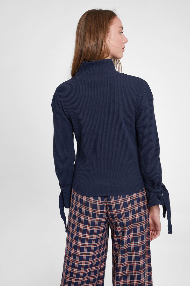 • Bayan Lacivert Halka Detaylı Triko Kazak