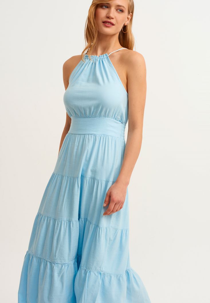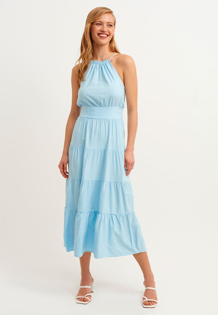 • Bayan Mavi Halter-Neck Maxi Elbise