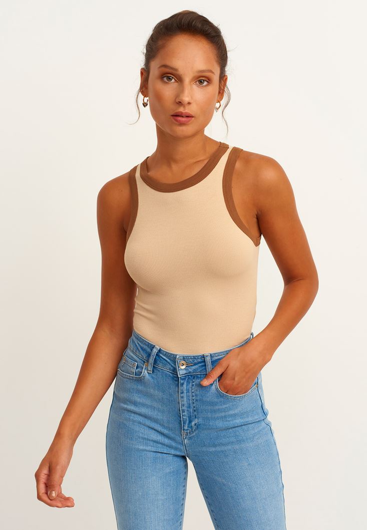 • Bayan Bej/Kahverengi Halter-Neck Tank Top