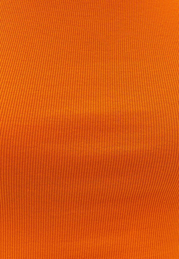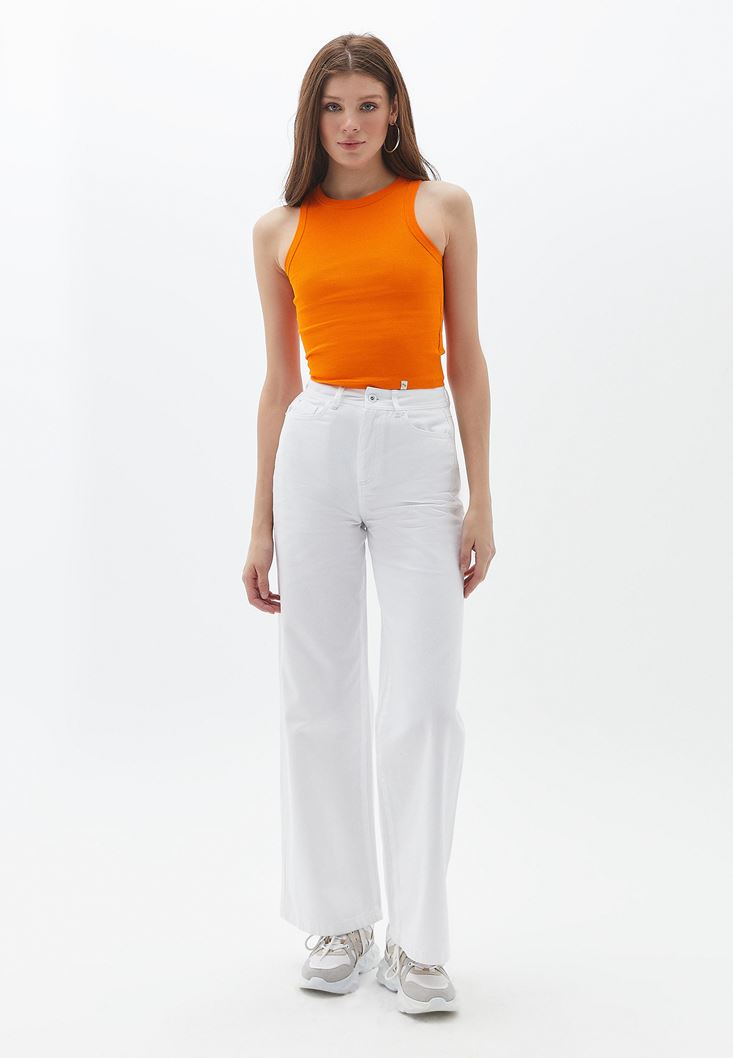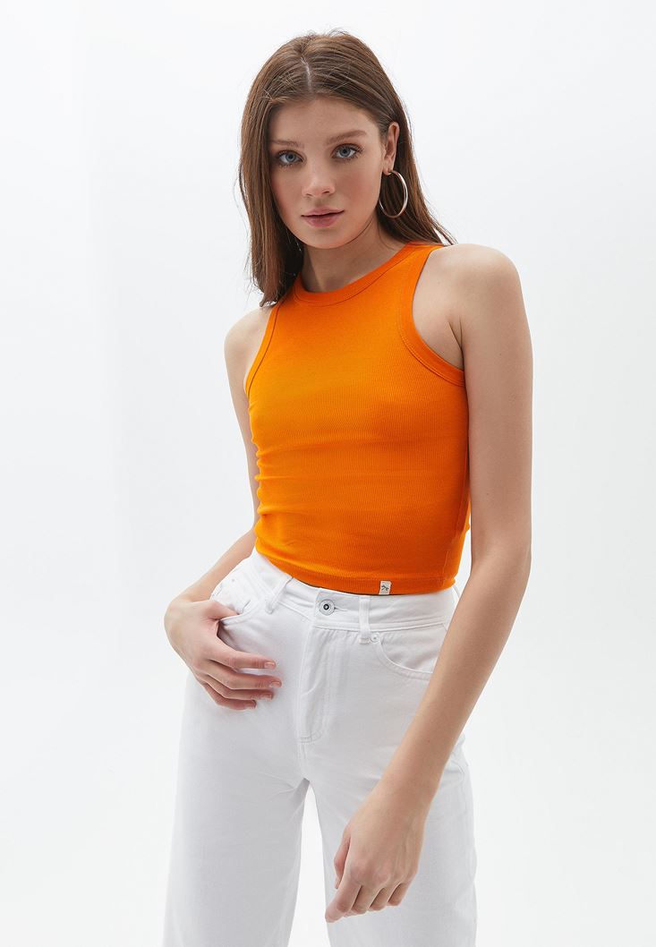 Pamuk karışımlı özel fitilli doku, bedeni saran esnek fit, halter yaka, crop kesim.