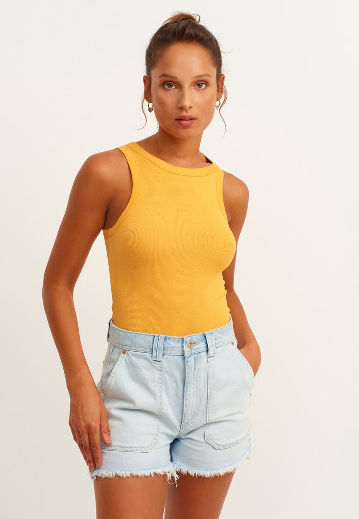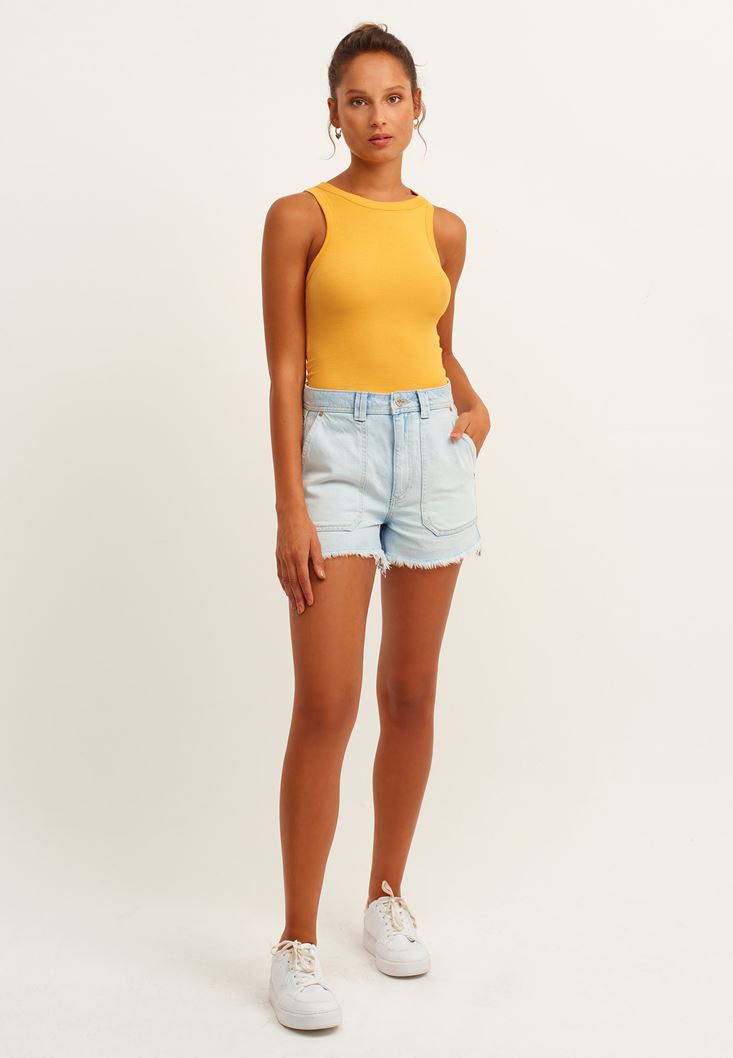 Halter Yaka Atlet ve Pamuklu Denim Şort Kombini