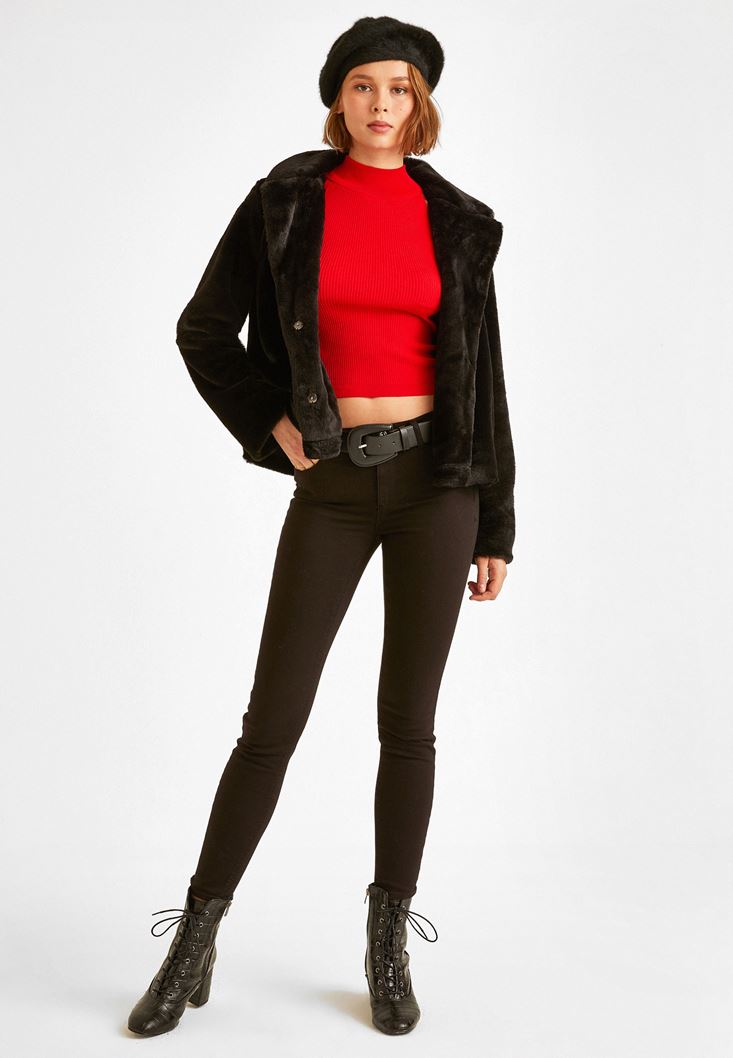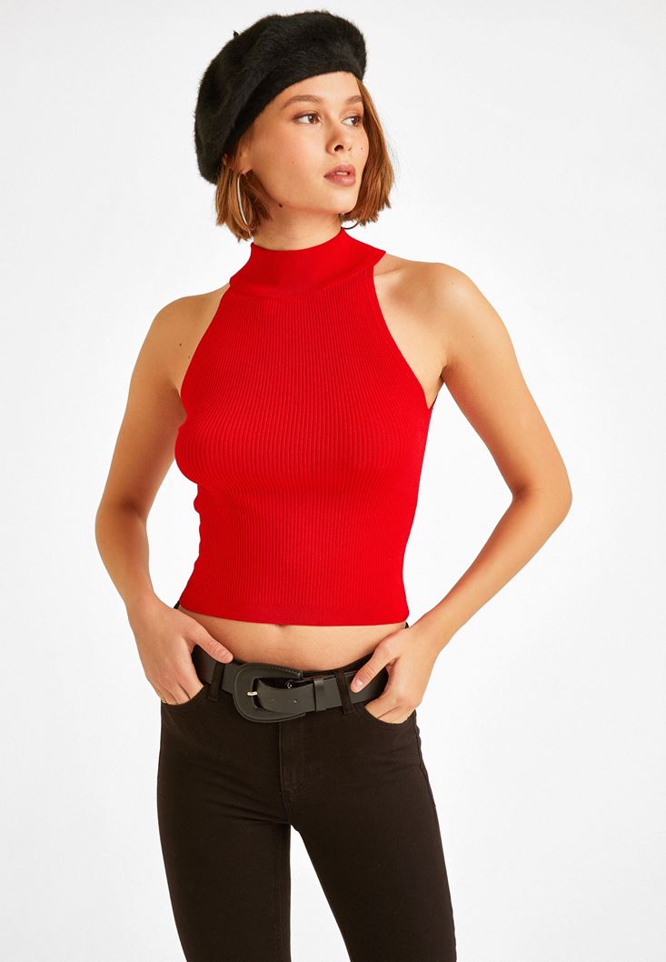 Halter Yaka Bluz modeli, fitilli örme dokusu ve viskon içeriği sayesinde göz alıcı görünümü sizlere sunuyor. Kadın bluz modeli, bedeni saran kalıbının yanı sıra halter yaka detayıyla da oldukça hoş görünüyor. Halter yaka bluz modeli ile özgün bir tarz elde edebileceğiniz çekici kombinler yapabilirsiniz. Yüksek belli pantolonlarla kullanabileceğiniz kadın bluz modelini favorilerinize ekleyebilirsiniz. Postallar veya topuklu botlar eşliğinde sizleri şıklığa ulaştıracak olan halter yaka bluz modelini bir an önce stilinize dahil edebilirsiniz. Kadın bluz modeliyle oluşturacağınız hoş kombinleri deri ceketlerle veya kürk kabanlarla tamamlayabilirsiniz. Oxxo'nun zarif detaylar eşliğinde sizlere sunduğu kadın bluz modelleri ile sezon modasının yakın takipçisi olabilirsiniz.