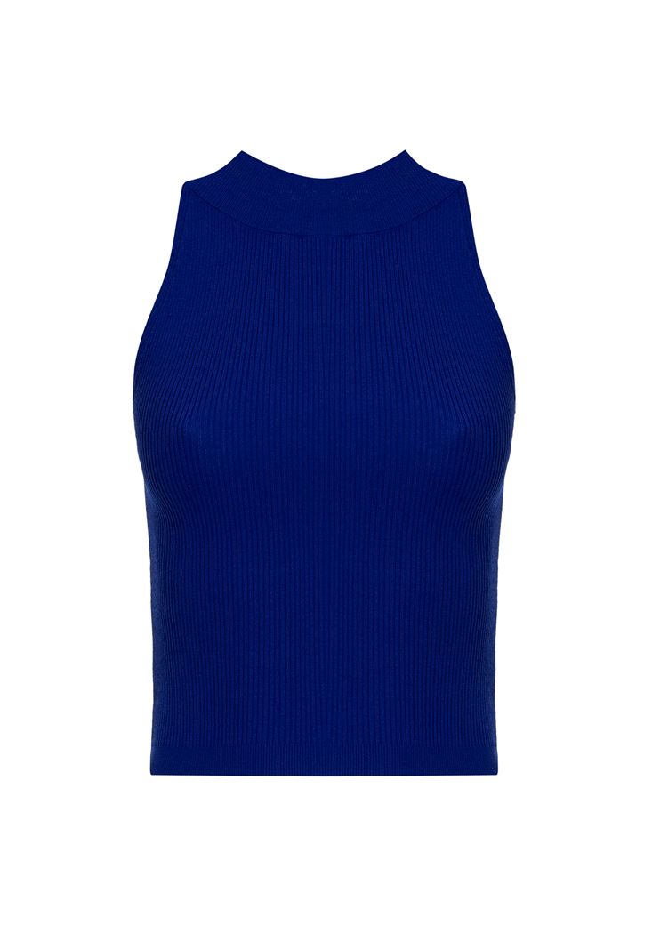 Lacivert Halter Yaka Bluz