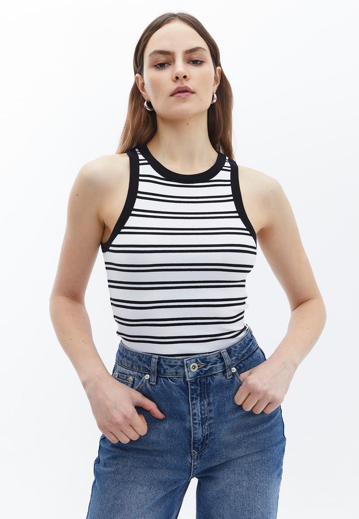 Halter Yaka Çizgili Atlet ve Pantolon Kombini