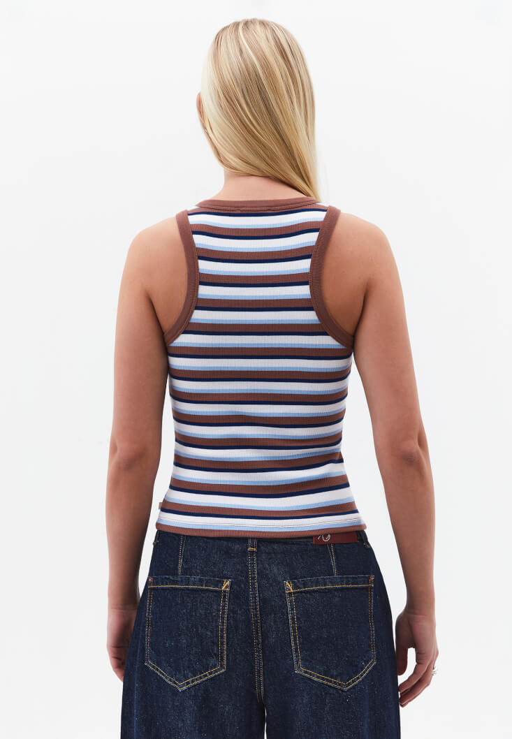 • Bayan Çok Renkli Halter Yaka Çizgili Atlet