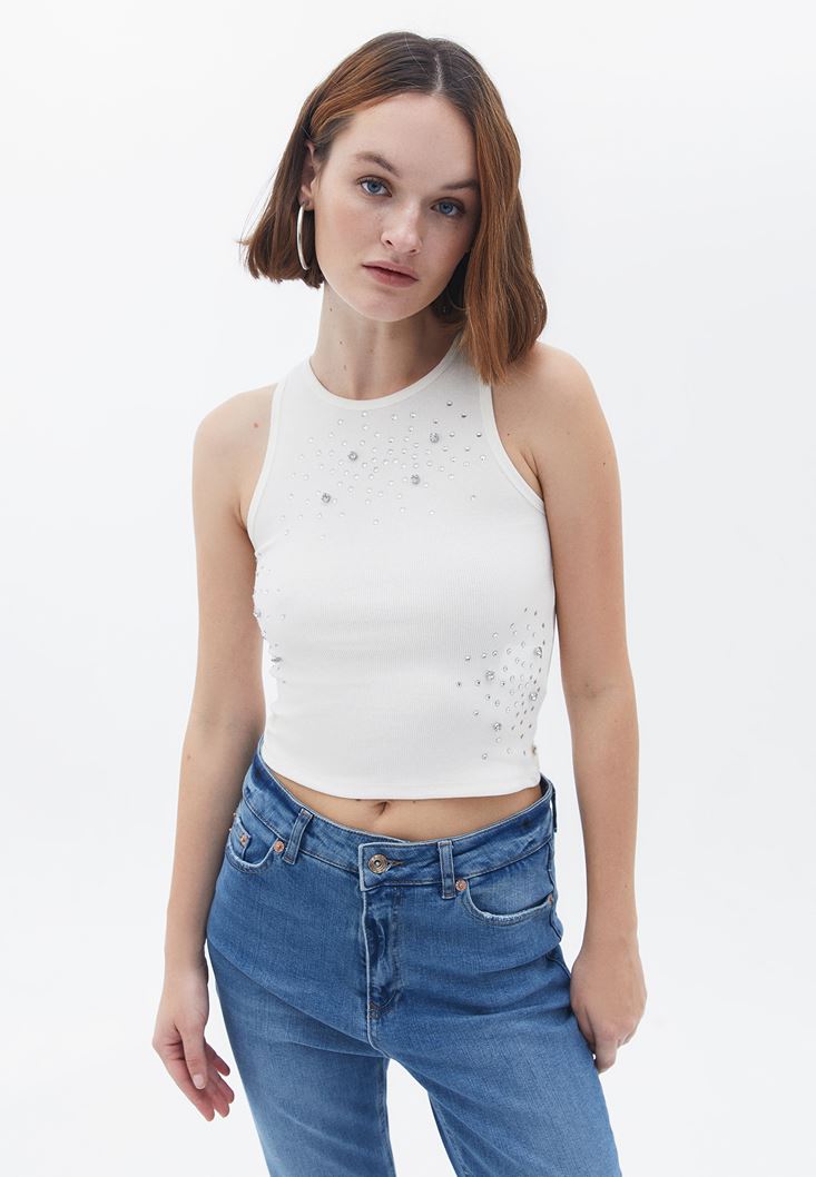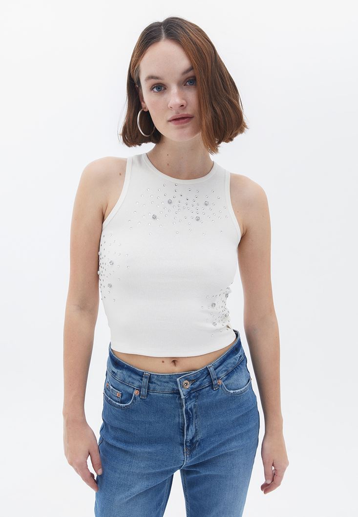 • Bayan Krem Halter Yaka Crop Atlet