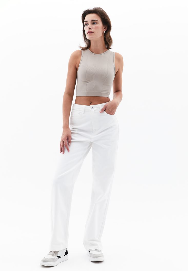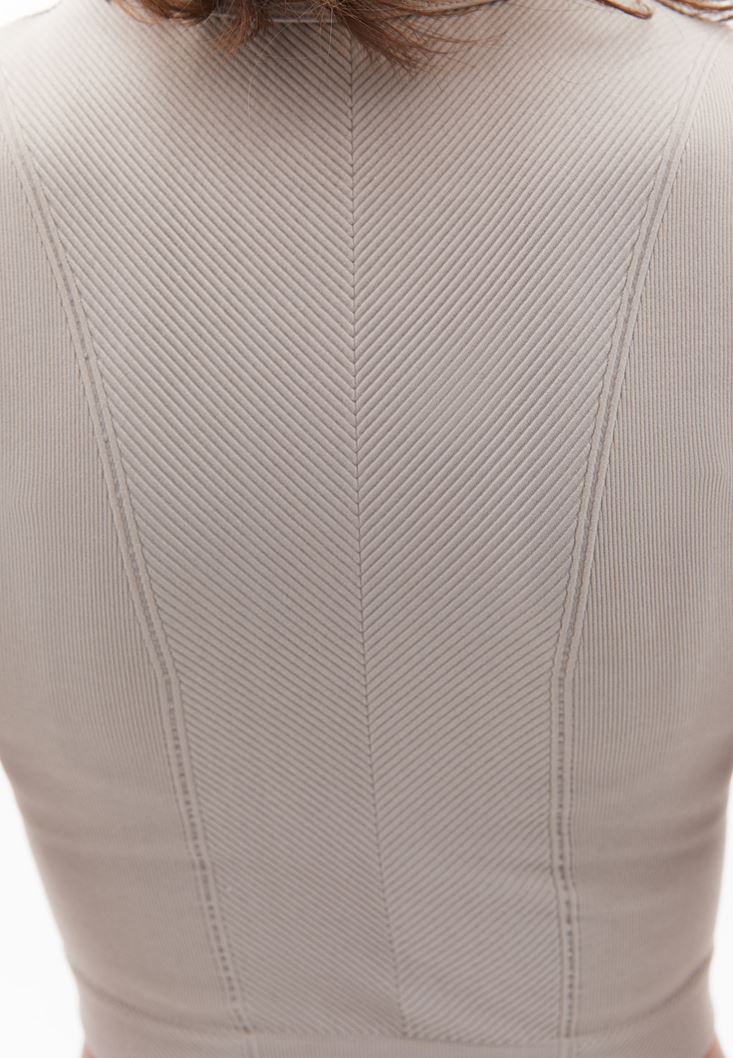 Bedeni saran dikişsiz esnek fit, seamless teknolojisi ile üretilen özel doku, sıfır yaka, crop kesim, jakarlı doku.