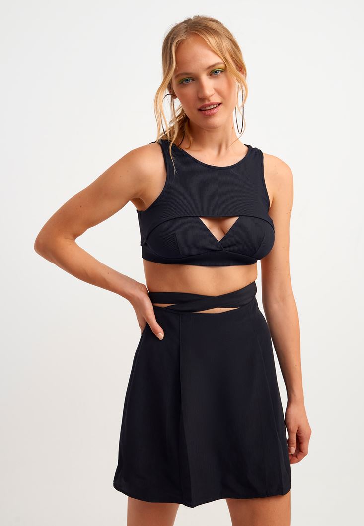 Halter Yaka Crop Top ve Mini Etek Kombini