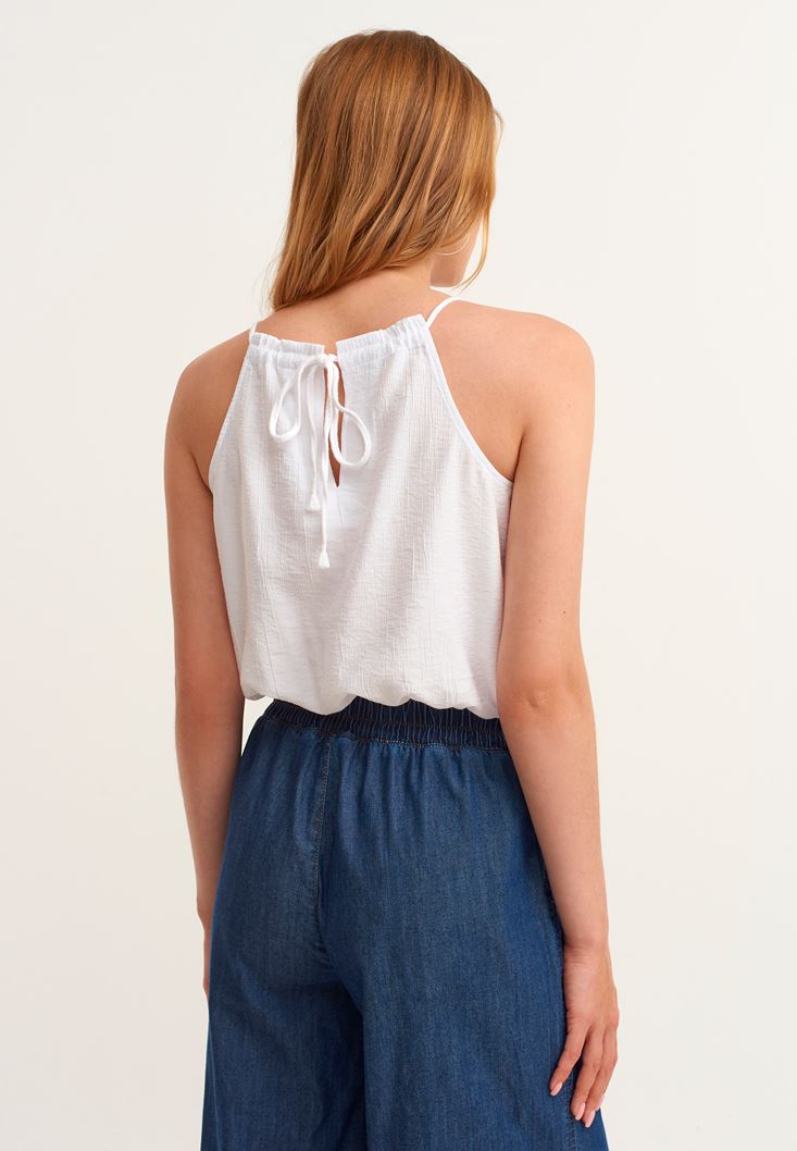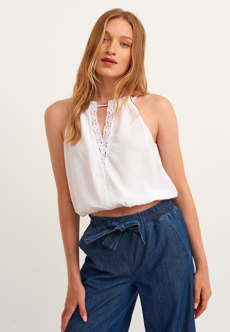 Beyaz Halter Yaka Crop Top