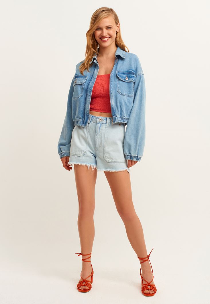 Kısa Bluz ve Denim Şort Kombini