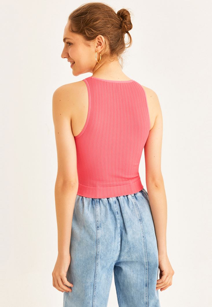 Pembe Halter Yaka Dikişsiz Atlet