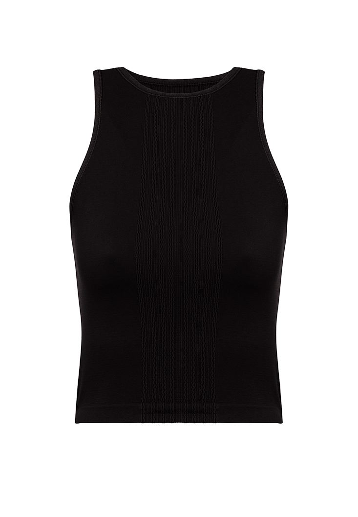 Siyah Halter Yaka Dikişsiz Crop Top