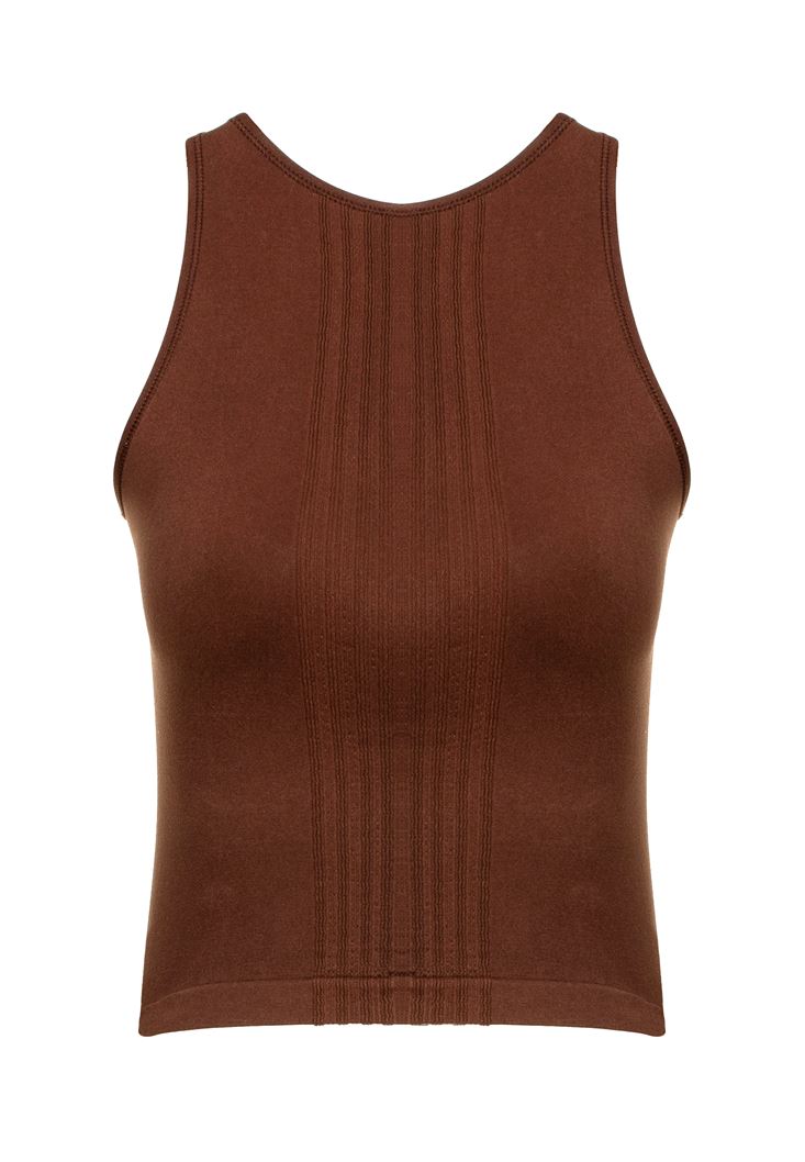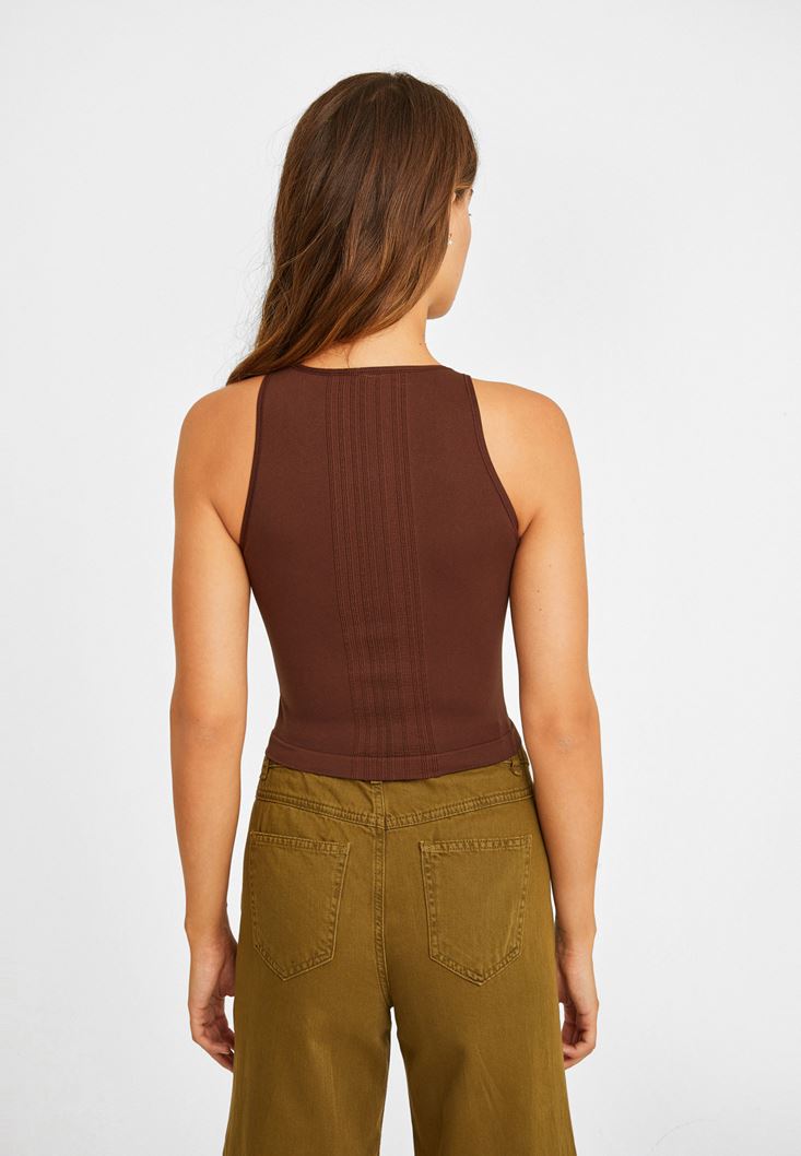 Kahverengi Halter Yaka Dikişsiz Crop Top