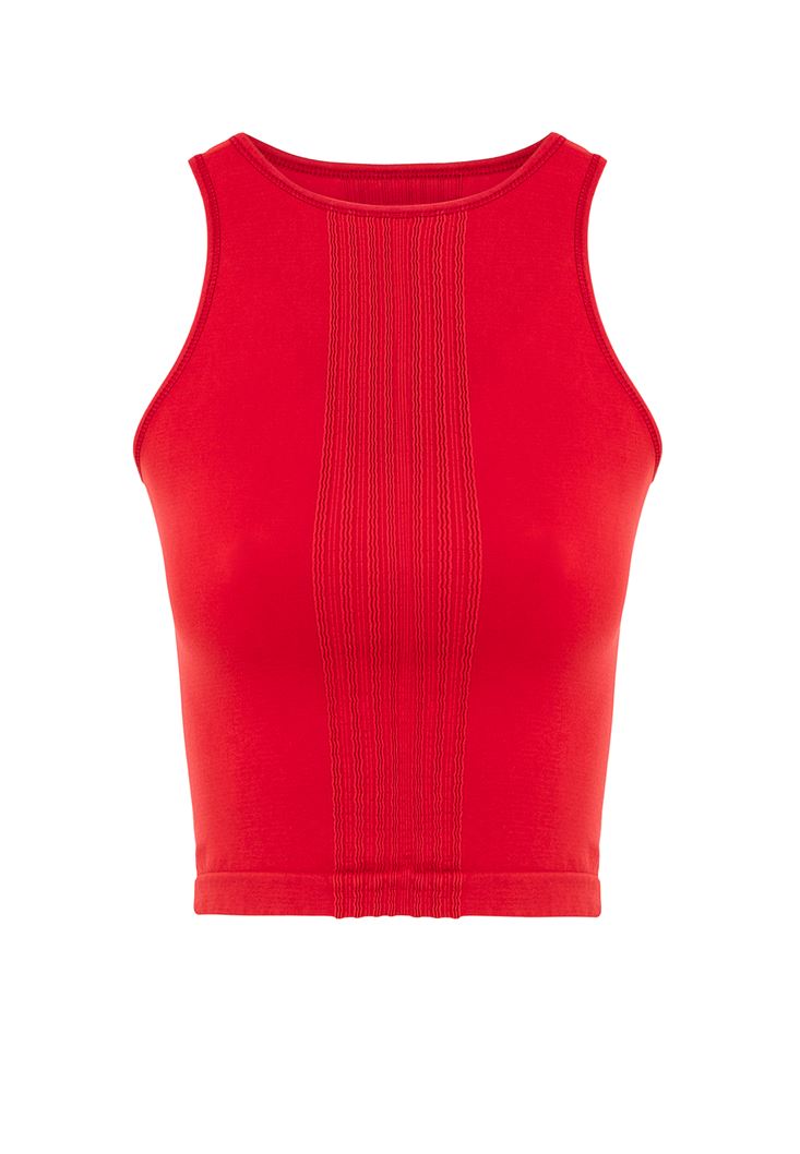 Kırmızı Halter Yaka Dikişsiz Crop Top