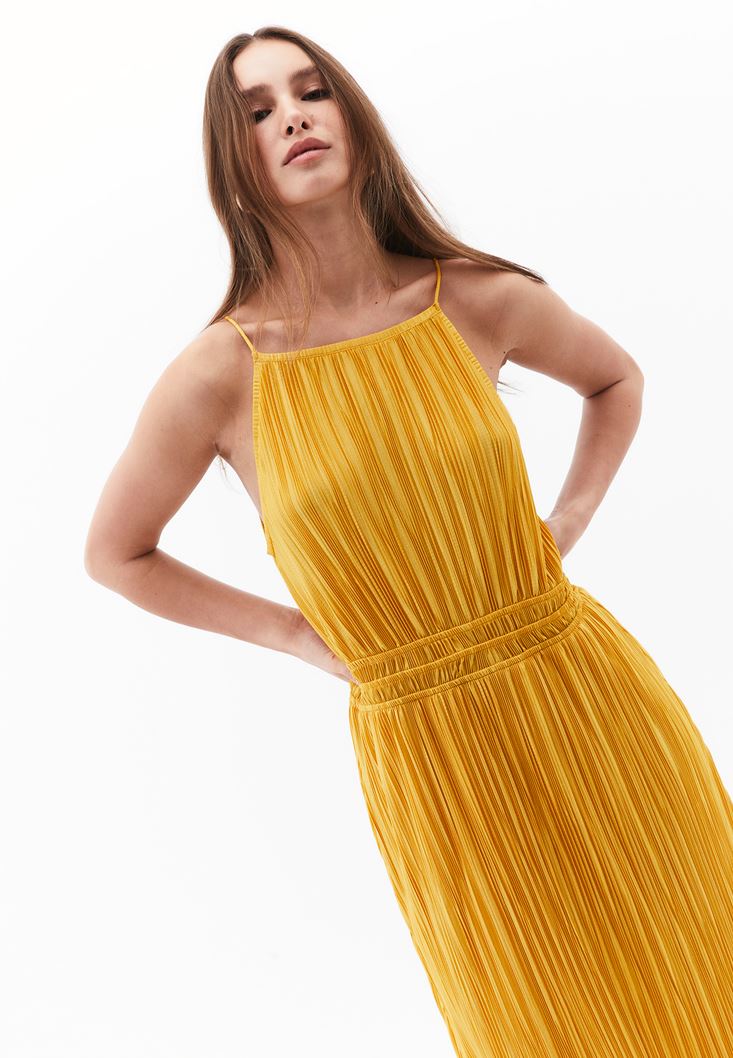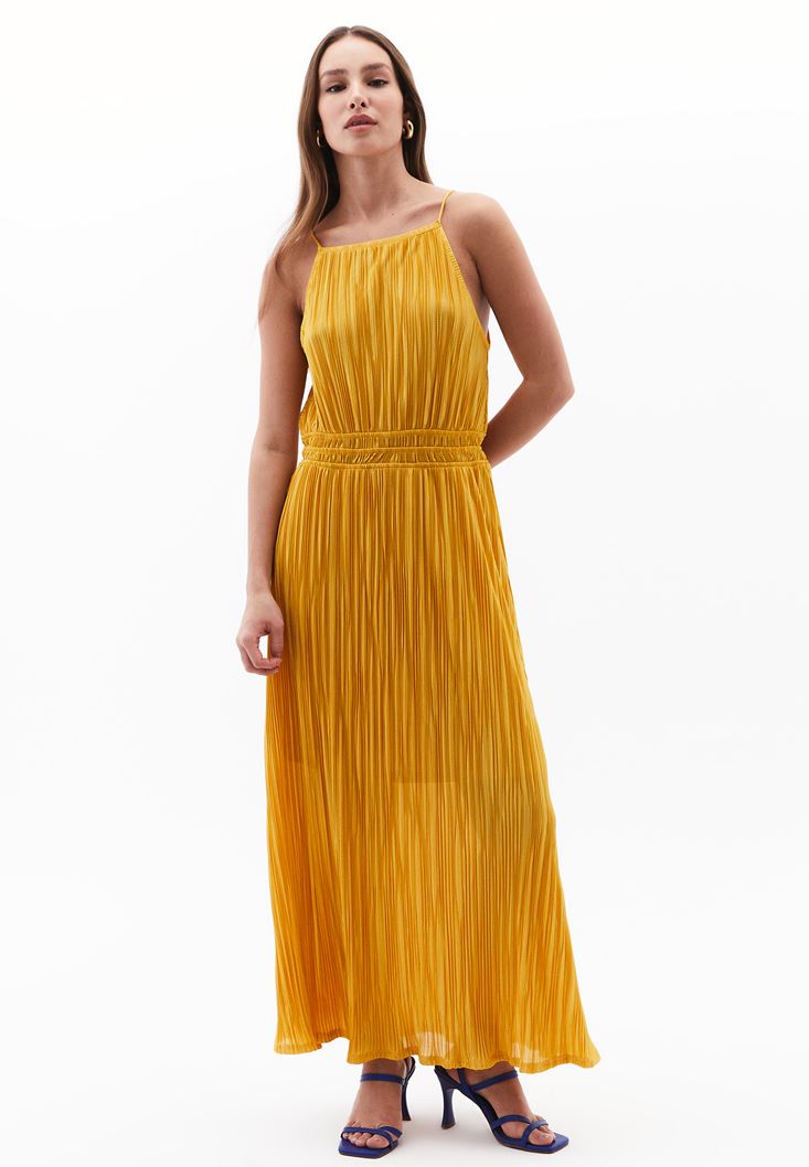 Halter Yaka Elbise ve Topuklu Terlik Kombini